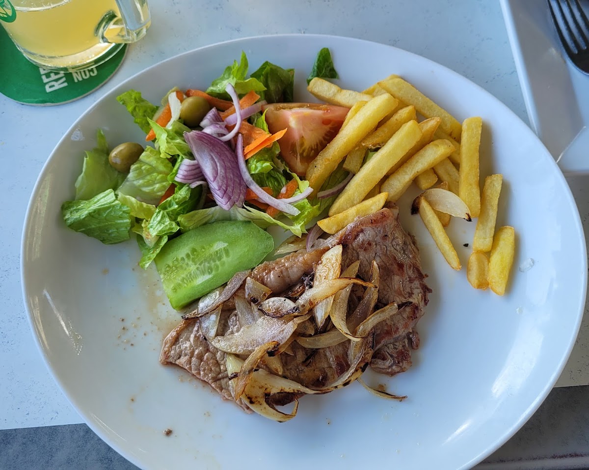 The vibe here leans toward casual dining with a distinctly local feel. It's a place where both visitors and residents pause to enjoy familiar Mediterranean flavors without fuss. The menu offers a diverse range of dishes, from seafood staples like garlic prawns and paella de marisco to more varied options including Canarian grilled fish and hearty plates such as lasagna or the half chicken with French fries and salad. Having a bowl of parmesan served alongside spaghetti bolognese is one of those thoughtful touches reflecting care in presentation.